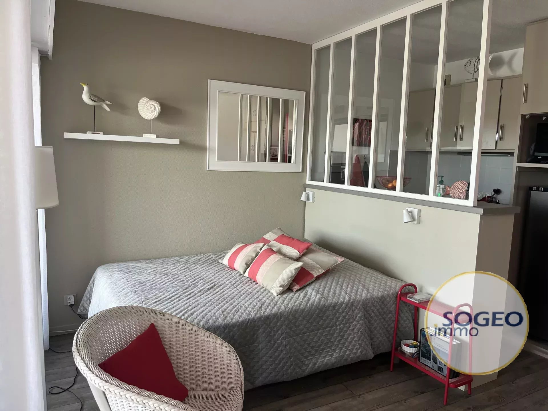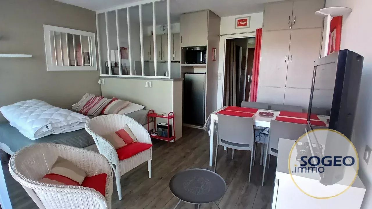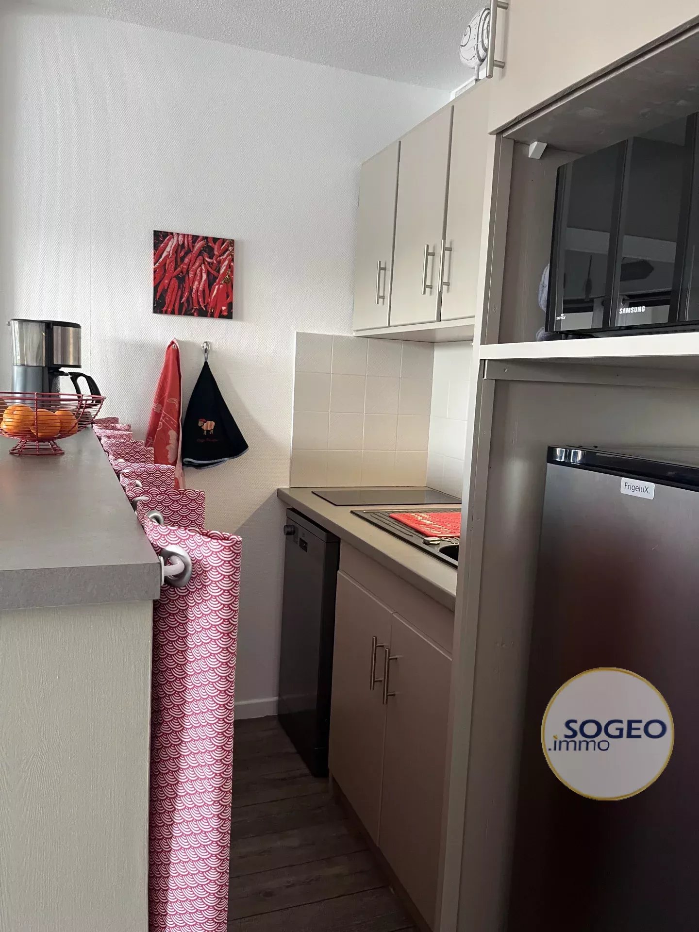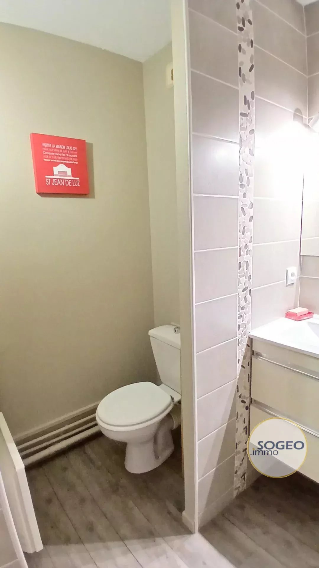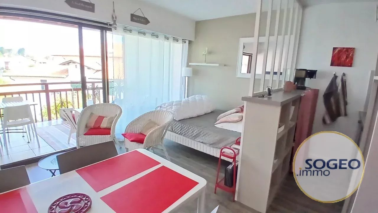Disponible à partir de mi novembre, joli studio de 27,27 m² au second et dernier étage à Ciboure offrant une pièce principale lumineuse et son coin kitchenette, ouverte sur une terrasse couverte de 10,90 m².